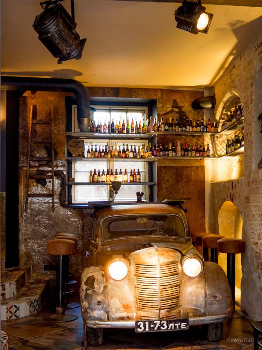 Sehr stylische Kneipen, in den baltischen Städten (Oldtimer in den Tresen integriert)